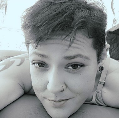 Tribal tattoo on left arm, a lily tattooed on right arm, and a star tattooed on an unknown ankle